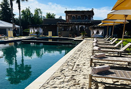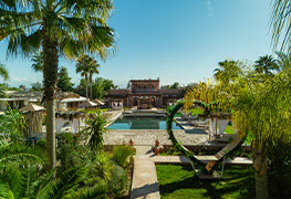Situé derrière la palmeraie de Marrakech, dans un havre de paix, au km 17 sur la route de Ouarzazate, Le Domaine Du Douar est un hébergement d’exception qui peut être privatisé pour accueillir plus de 56 personnes (avec possibilité de loger 18 personnes de plus dans la maison d’hôtes avoisinante) ce qui permet de recevoir des groupes de 74 personnes au total. Idéal pour organiser un événement familial : mariage, fiançailles, anniversaire, fête de divorce, baby shower, EVJF, EVJG, causinade, séminaire ou soirée d’entreprise, ce domaine spacieux vous offre la possibilité de séjourner en famille ou entre amis grâce à sa grande capacité d’accueil, vous pouvez également en profiter pour effectuer un stage de yoga à Marrakech.